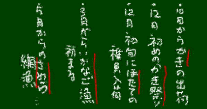 [ ほたてについて]・殻のむき方・保存法など・・・ [ かきについて]・殻のむき方・保存法など・・・ [ さわら漁とは]・さわら漁など・・・ [ いかなご漁とは]・いかなご漁など・・・ [ その他の情報 ] ・地域情報などいろいろ・・・