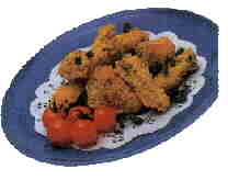 A 軽く塩・こしょうして、小麦粉、とき卵、生パン粉順につけ、 熱した油(180℃)で色よく揚げる。 B パセリは小房に摘み取り、水気をよくとって低温(160℃)でからりと揚げる。 C 皿にかきとパセリを盛り、レモンを添える。